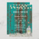Rustic Flowers & Lantern Teal Wood Bridal Shower Invitation