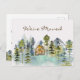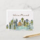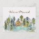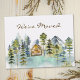 Introducing our Rustic Foggy Forest Mountain Cabin We Moved Postcard. Featuring a cosy cabin nestled in a foggy green pine forest, perfect for nature lovers and hiking enthusiasts, this serene landscape captures the beauty of the woods and the peacefulness of the forest in vintage style.