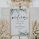 Beautiful rustic eucalyptus wedding sign for your special day. Featuring elegant watercolor foliage in sage green on a white background. Large welcome calligraphy is in a cool hand written style font. Easy to edit with your unique information.