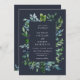 Rustic Forest Foliage Navy Blue Wedding Invitation
