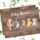 Adorable woodland baby shower invitation featuring the cutest forest animals.... bear, racoon, mouse, fox & bunny set on a rustic wood background.