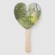 A rustic charm, this wedding hand fan features a lovely green and yellow forest background on the front with "Love never fails" written in cute cursive green font. Underneath that is the name of the couple, venue, and wedding date. The back features a lovely message on a light green background. Order yours today!