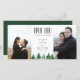 Rustic watercolor forest, "OPEN BAR!", wedding humour save the date 2-photo card. Back of card features solid hunter green colour.