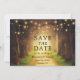 Rustic Forest Path String Lights Save the Date Wedding Engagement Announcement Card
