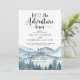 Elegant rustic watercolor mountains and forest scene wedding invitation, featuring lush blue and green trees and mountains with a script text: let the adventure begin. For those who love a romantic dreamy woodland vibe for their ceremony and celebration. To see the full collection of matching materials for this design please visit: https://www.zazzle.com/collections/rustic_forest_mountain_wedding-119965625201006103