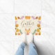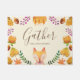 Sweet and cute doormat for the Thanksgiving season. The design has a fox in the middle with autumn foliage and flowers surrounding around it. They were painted with watercolor. In the middle there is a text in calligraphy that says "Gather" with your family name under it.