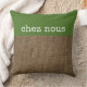 Country Cabin French Throw Pillow. Rustic burlap look with Chez Nous against Green. Means "at our house" in French.