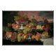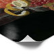This stunning poster is like two paintings in one! Imagine a rustic wooden table overflowing with juicy fruits kissed by the golden light of a breathtaking sunset. Plums, grapes, and peaches practically glow, while delicate wildflowers add a touch of whimsy. But wait, there's more! The background reveals a dreamy landscape bathed in the warm hues of twilight, making you feel like you're right there.