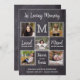 Rustic Chalkboard Unique Funeral Thank You Cards. These sympathy funeral cards feature a unique photo collage for 5 of your favourite photos, monogram initial and name, a heartfelt Quote " In Loving Memory...Loved beyond words , Missed beyond measure...Forever in our Hearts" on chalkboard in a grey and white design. These memorial sympathy cards are perfect for funeral thank you cards, or celebration of life thank you cards.