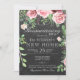 Rustic elegant housewarming party / barbecue invitation with blush pink and red burgundy hand painted peony roses with emerald green leaves and foliage and with a trendy chic hand lettered editable calligraphy script over a dark grey charcoal chalkboard background. +++++++++++ Suitable for a spring, summer garden or autumn fall / outdoor backyard / vintage floral / rustic country cottage farmhouse / new home / housewarming party or barbecue.