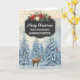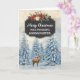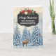 Merry Christmas for goddaughter card with rustic country chalkboard pattern and snowy watercolor forest scene with deer and birds.