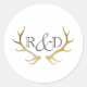 Rustic Gold Antler | Elegant Initial Wedding Classic Round Sticker