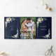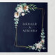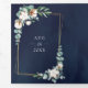 Rustic Gold Cotton Eucalyptus QR Code Navy Wedding Tri-Fold Invitation