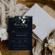 These rustic gold floral wedding blue menu choice cards are perfect for a simple wedding. This artistic design features hand-drawn gold floral and watercolor eucalyptus green foliage in a dark blue background, inspiring natural beauty.