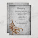 Your wedding guests will appreciate being kept up to date with your wedding reception details with this vintage-inspired, rustic wedding reception details card. It has a large, metallic copper flower at the bottom left corner with an antique grey parchment pattern background.
