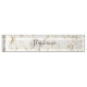 My professional office executive design desk name plaque is elegant marble on both ends and black in the middle it allows my name to pop out. The quality is amazing everything I wanted and it’s true to the picture. I highly recommend this product. The design is true to the picture. The color and quality are awesome it’s everything I wanted truly stunning. I love everything about this product.