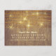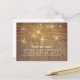 rustic country chic save the date with barn wood, string lights and gold glitter confetti