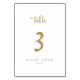 This rustic gold script table number is perfect for a country wedding. The simple and modern gold and white design features unique whimsical handwritten calligraphy lettering with a contemporary minimalist boho style. Customisable in any colour. Keep the design minimal and simplistic, as is, or personalise it by adding your own graphics and artwork. The card prints on the front and back (double-sided). Items are printed exactly as they appear on your screen when you add to cart, so personalise and add each table number that you need to your cart individually.