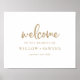 This rustic gold script wedding welcome poster is perfect for a country wedding. The simple and modern gold and white design features unique whimsical handwritten calligraphy lettering with a contemporary minimalist boho style. Customisable in any colour. Keep the design minimal and simplistic, as is, or personalise it by adding your own graphics and artwork. Customise the poster with the name of the bride and groom, and the date of the wedding.