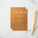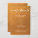 This rustic gold wedding event details card features elegant white typography overlaid on understated earth tones. Simple light orange hues follow the current fall trends for a bohemian wedding this autumn. Complete the look with your minimalist script over the colour fade. Add your ceremony and reception location, along with accommodations options for your guests. A list of hotels or directions can be included on this card.