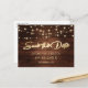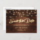 Rustic Gold Wood String Lights Save The Date Announcement Postcard