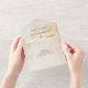 Introducing this rustic golden sunflower All-in-One wedding invitation - a radiant and elegant invitation that encompasses everything you need to set the tone for your special day, featuring a captivating opaque golden sunflower design! The All-in-One wedding invitations are both beautiful and practical by combining the wedding invitation with an easy to remove perforated RSVP postcard. They are also quick and easy to prepare for mailing. Simply address the invitation, fold the back flap and seal with the included clear stickers. Once your guests receive the pre-addressed invitation they simply tear off the perforated RSVP card and drop it in the mail.