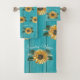 Rustic Golden Yellow Sunflower Teal Wood Bath Towel Set