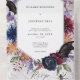 AVAILABLE WITH OR WITHOUT A QR CODE OR WITH OR WITHOUT DINNER SELECTION OPTIONS. Calling all ghouls and boos! Celebrate your love story with a hauntingly delightful Halloween wedding! Our frightfully fun invitations set the scene for a bewitching bash. Imagine a distressed background in burgundy and black, the perfect canvas for a spooky soirée. Whimsical florals in gothic shades of pink, burgundy, blue, rust gold, purple and black entwine with delightfully creepy accents – like spiders casting intricate webs and playful bats flitting about. This boo-tiful design screams "happily ever after" with a Halloween twist, ensuring your guests will be spellbound by your unique celebration of love. Created by Simply Farmhouse Press.