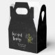 Rustic and gothic halloween theme wedding favour box featuring illustration of black roses.