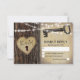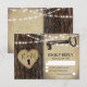 Rustic antique goth wedding response cards featuring a vintage paper background, woodland tree with a carved heart containing your initials and a keyhole, a skeleton key to unlock the heart, twinkle lights and an elegant rsvp wedding template.