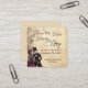 This Halloween wedding invitation features a skeleton couple, beautiful flowers, and a cemetery set against an aged paper background. The invitation blends romance, elegance, and spookiness into a unique and captivating design.
