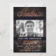 Modern rustic look photo graduation announcement and party invitation design featuring a grunge rusty background on front and back. The word "Graduate" is prominent on front in a rose gold tone gradient with area below for a single photo and graduation announcement details below. The back is reserved for your celebration details.