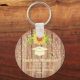 An elegant rustic yellow sunflower Graduation key chain  comprising of a  brown wooden grain background decorated with a pretty floral watercolor yellow sunflower, academic / graduation graduate cap a bumble bee and strings of lights. Makes a unique  congratulations gift / keepsake for any graduate. Personalized  with the graduate's name, year and the school college or university attended.