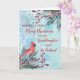 Merry Christmas for granddaughter and her husband card with watercolor foliage, a cardinal and watercolor snow pattern and thoughtful verse.