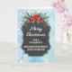 Merry Christmas for granddaughter and her husband card with rustic country chalkboard pattern and winter foliage with poinsettias.