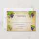 Raise your glass and toast the happy couple. This response card invitation celebrates the bride and groom with a grapes strung along a grapevine against a weathered parchment surface. Decorative swirls are scattered along the invitation to tie in the grapevine look. Perfect for a vineyard wedding or any event held at a vineyard or winery. Available with matching products.