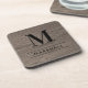 Rustic Gray Wood Serif Monogram Name Coaster
