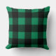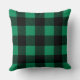 Stylish throw pillow design features a rustic modern farmhouse emerald green and black buffalo plaid pattern.