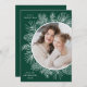 Elegant holiday card featuring your photo encircled by white pinecones, pine boughs, and winter foliage with a green background. The botanical holiday photo card features your custom holiday greeting, family name, and the year in white lettering. Add your custom message to the back of the card or leave blank.