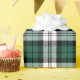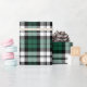This classic holiday wrapping paper design features a rustic green and white with black watch Scottish tartan plaid patterned background.