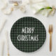 Rustic Green & Black Buffalo Plaid Merry Christmas Paper Plate