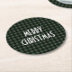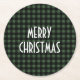 Rustic Green & Black Buffalo Plaid Merry Christmas Round Paper Coaster