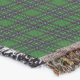 A quality printed throw has its advantages. This is a much finer weave throw than its loopier cousins, and though lighter, it is worth the investment for custom room accessorizing. The back is much prettier than the typical brown, and the fringe on the long sides very vivid, the selvage nicely done. Before photographing, I washed the throw in cold water, delicate, with a thicker woven throw the same size. On tumble dry low, this throw was dry in half the time as the other. This is a very practical quality if you use throws for furniture covers or to wrap up in frequently. The sleekness of the fabric makes it a great layer for accenting or protecting without the feeling of sitting on too much stuff. Perfect for napping or when you feel a light chill coming on. The color printing is beautiful and on this fabric, matched the design and color of my Photoshop image. This is an advantage for blending room fabrics and colors. The fringe on the short sides prints the colors from the design image and therefore varies from the side fringe. I streaked a white fractal line through the plaid pattern to give the illusion of weaving. This printed as crisp as an illusory thread, and put some white in the short side fringe, showing another advantage of print vs loomed- for artistic purposes, line lines, detail, and color integrity can be planned and preserved. My loomed throws have color limitations and more of a needlepoint texture. Print throws reproduce an exact image. The throw felt a little stiff straight out of the package, but this went away in the first delicate wash. Of course I searched the wash water for ink or bleeding and there was none.