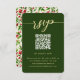 This rustic wedding response card features a place for your QR code so that guests can easily rsvp on your wedding website. The front features a simple and clean layout with trendy script typography and a green background. The back is a beautiful botanical berries and greenery holiday print, perfect for a Christmas or winter wedding.