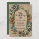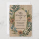 Rustic brown wood with green, dark orange, and gold hand-drawn beautiful foliage woodland flowers Wedding invitations. This stylish modern abstract invitation is perfect for any classy and chic girl. This design is ideal for a trendy party event. Customise this design with your own message and personalised information. All designs are printed
