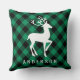 Rustic Green Buffalo Plaid Reindeer Monogram Cushion