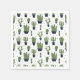 Paper napkins with a rustic western flavour. Designed with a bunch of cute green cactuses in a repeating pattern. Specifically, green coloured prickly cactus, in all kinds of shapes and sizes, each sitting in its own dark blue flower pot. Little decorative triangles in between them. Whimsical fun illustration.