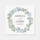 Celebrate your special day with this modern and elegant wedding napkin, showcasing original hand-painted watercolor artwork of sage green eucalyptus leaves beautifully arranged in a botanical wreath. Perfect for rustic, garden, boho, or minimalist weddings, this template offers a fresh and timeless aesthetic. Easily customise with your names and wedding date for a personal, nature-inspired touch.