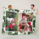 Rustic Green Holly Three Photo Collage Holiday Fleece Blanket