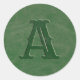 Rustic Green Leather Texture Monogram Initial Classic Round Sticker